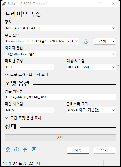 2번 : Rufus로 클린설치 (Rufus 기능활용)