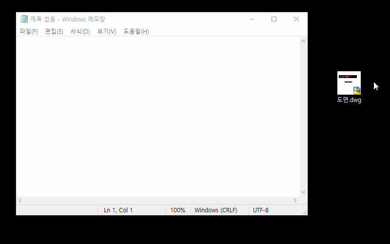 해당도면을 메모장에 드레그 앤 드롭 하자